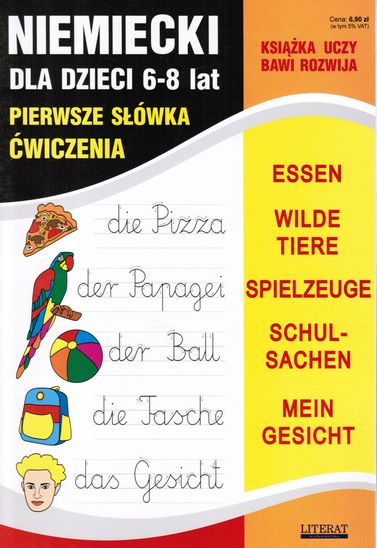 Różnorodne ćwiczenia oraz słowniczek ułatwiające naukę języka niemieckiego w nauczaniu początkowym. Opierają się na wykorzystaniu pamięci wzrokowej. Za pomocą tej książki dziecko pozna pierwsze słówka dotyczące tematów: BERUF, ZAHLEN, TÄTIGKEITEN, ZEIT, SEIN. „Niemiecki dla dzieci” uczy pisania i wymowy oraz pozwala połączyć naukę z zabawą. Polecamy również serię „Angielski dla dzieci”.