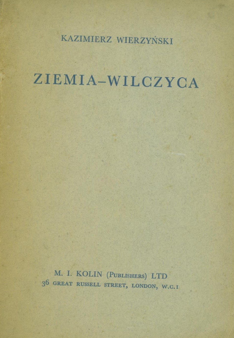 Ziemia - wilczyca / Kazimierz Wierzyński. - London : M. I. Kolin, 1941 (Edinburgh : The Riverside Press). - 62, [1] strona ; 19 cm.