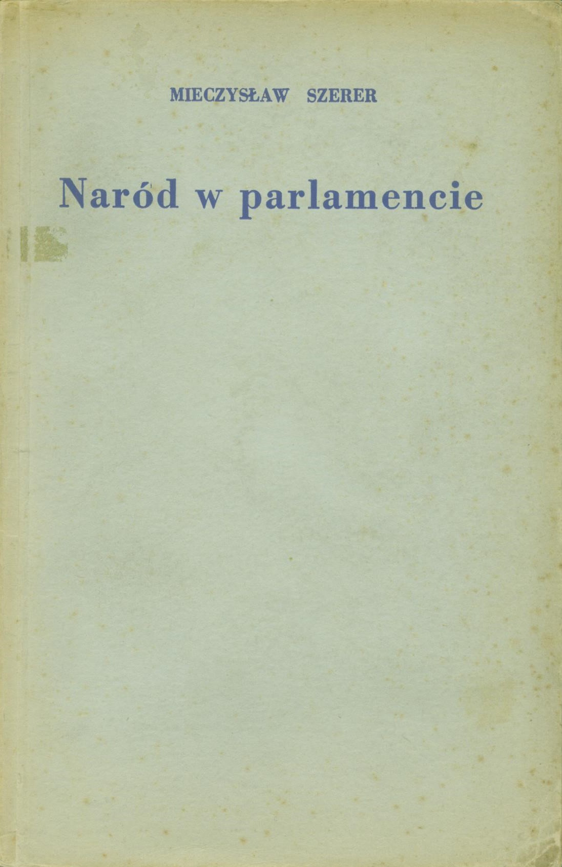Naród w parlamencie : prawo i obyczaje polityczne Anglji / Mieczysław Szerer. - London : M. I. Kolin, 1941. - [4], 160, [2] strony, [8] stron tablic : ilustracje ; 22 cm.
