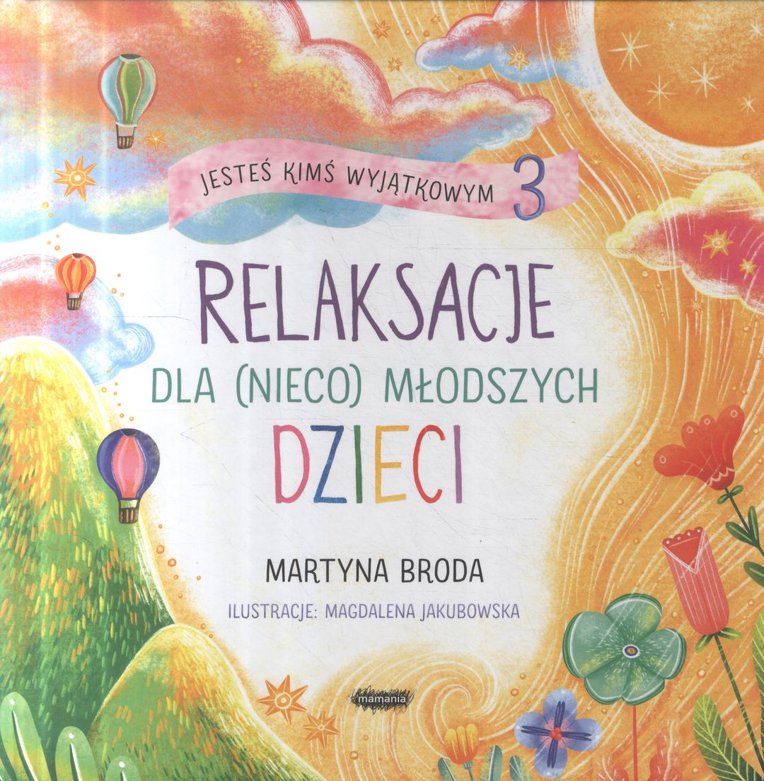 Jesteś kimś wyjątkowym : relaksacje dla dzieci / Martyna Broda ; ilustracje: Karolina Hyla. - Warszawa : Mamania, copyright 2020. - 42, [2] strony : ilustracje kolorowe ; 26x26 cm.