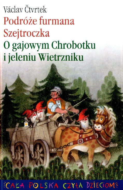 „Podróże furmana Szejtroczka”. W mieście Jiczynie mieszkał sobie niby zwykły furman – Szejtroczek. Ale widział kto, żeby furman miał konia, który był kiedyś… sumem? Szejtroczka obdarował tak wyjątkowym prezentem wodnik Czesałek. To nie tylko początek przygód wesołego furmana. Posłuchajcie koniecznie tej i innych po raz pierwszy publikowanych w Polsce opowieści z życia Szejtroczka i jego wyjątkowego konia, Bułeczki! Spotkajcie w nich olbrzymy i rusałki, a nawet tajemniczego Ognistego Luda. /nota wydawnicza/