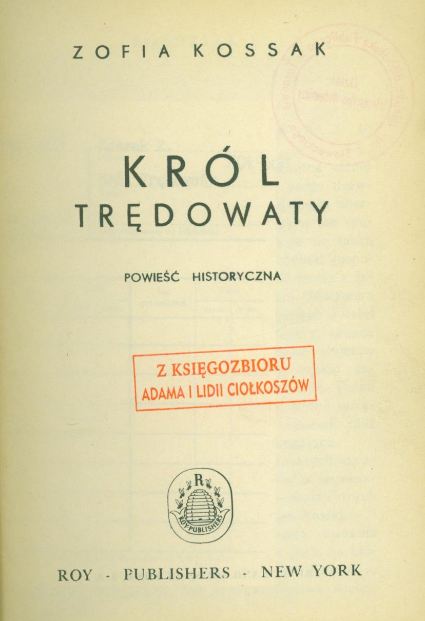 Król trędowaty / Zofia Kossak. - New York: Roy Publishers, [1945?]. - [4], 356, [1] strona ; 17 cm.