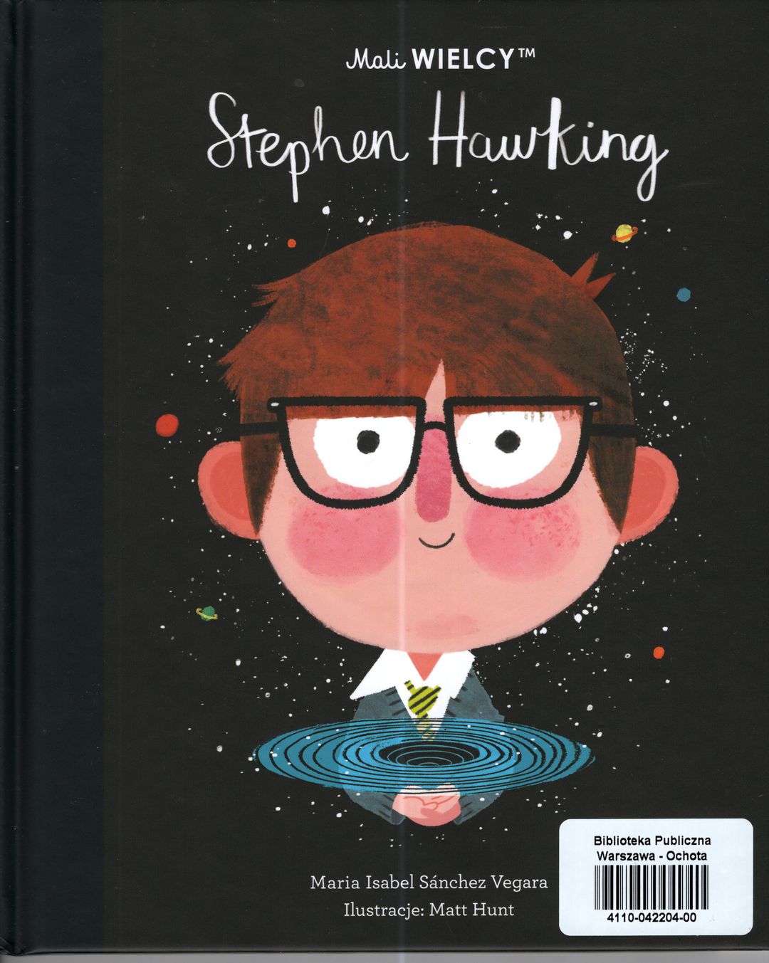 Stephen Hawking / Maria Isabel Sánchez Vegara ; ilustracje: Matt Hunt ; [tłumaczenie z języka angielskiego: Julia Tokarczyk]. - Wydanie drugie. - Warszawa : Smart Books, 2023. - [32] strony : fotografie, ilustracje kolorowe ; 25 cm.