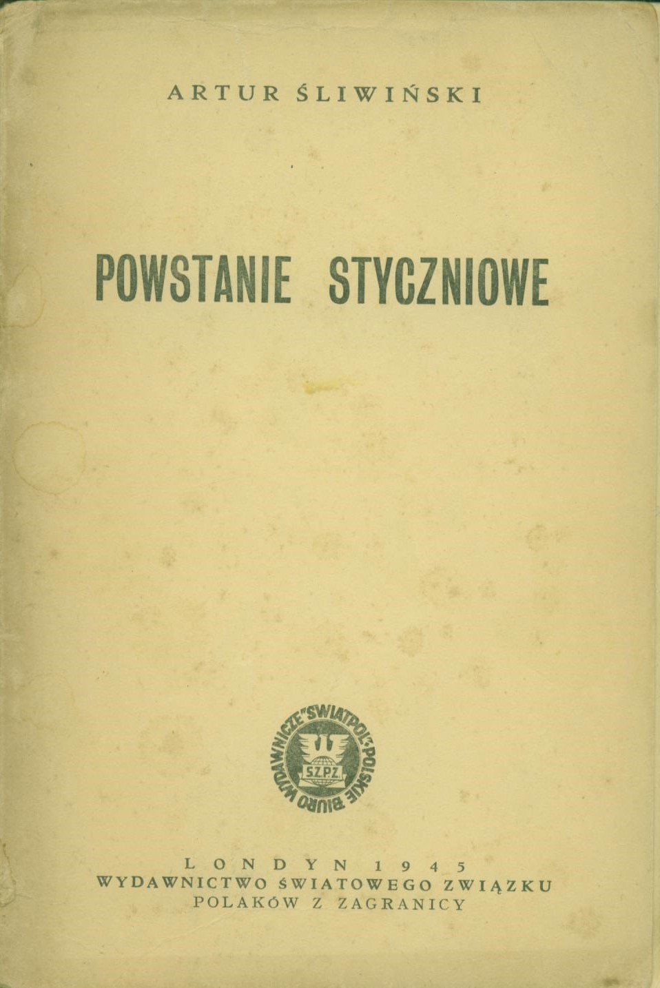 Powstanie styczniowe / Artur Śliwiński. - Wydanie nowe il, przej. i zaopatrzone w indeks nazwisk. - Londyn : Wydawnictwo Światowego Związku Polaków z Zagranicy, 1945. - 186, [1] strona ; 18 cm.