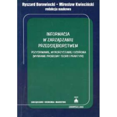 Omówione zagadnienia : zarządzanie informacją w przedsiębiorstwie - współczesne koncepcje i dylematy, globalizacja gospodarki a nowe tendencje zarządzania przedsiębiorstwem, nowe funkcje informacji we współczesnych koncepcjach zarządzania, analiza ekonomiczna jako źródło informacji o przedsiębiorstwie, korzyści dobrej praktyki w kształtowaniu przejrzystości systemu informacyjnego spółek publicznych, zarządzanie wiedzą a bezpieczeństwo transferu informacji w nowoczesnych organizacjach, niektóre czynniki wpływające na zagrożenie bezpieczeństwa ekonomicznego przedsiębiorcy, tworzenie efektywnego systemu wywiadu gospodarczego, zintegrowane systemy informacyjne jako narzędzie wspomagające integrację marketingu i logistyki, zagadnienia ochrony danych osobowych w działalności zakładów ubezpieczeń i zakładów opieki zdrowotnej.[taniaksiazka.pl]